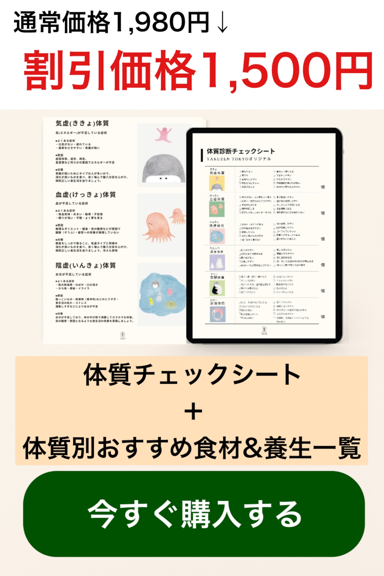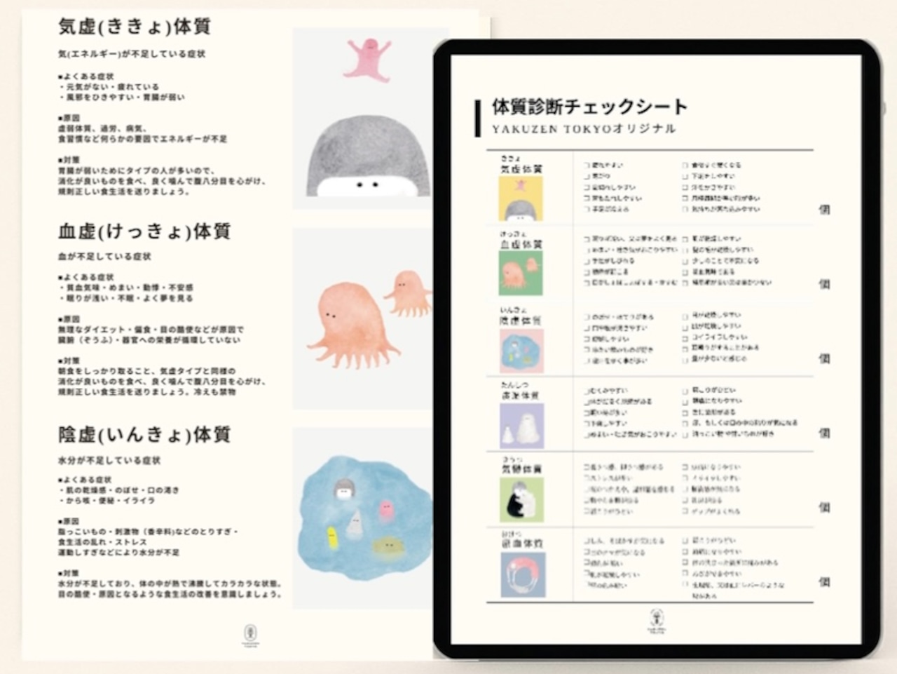 YAKUZEN TOKYOオリジナル 体質チェックシート➕体質別食材・養生一覧表(PDF)